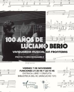Celebramos los 100 años de Luciano Berio en la Noche de los Museos! Homenajeamos al gran compositor italiano con el espectáculo “Vanguardia musical sin fronteras” junto a @proyectoredensamble Te invitamos a vivir este homenaje a través de una selección de obras del periodo de colaboración con Cathy Berberian, a quien también celebramos en sus 100 […]